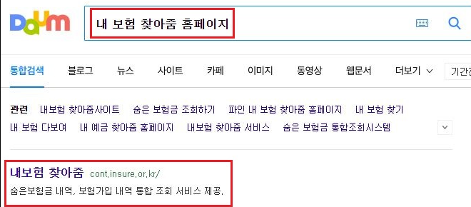검색창에 '내보험 찾아줌'을 검색하면 서비스를 쉽게 이용할 수 있습니다.