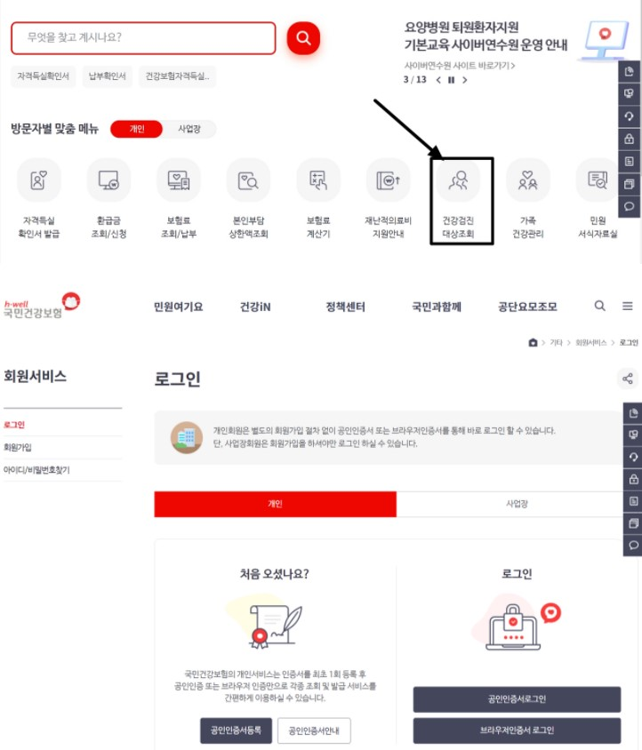 로그인을 하면 암검진 대상도 확인가능합니다.